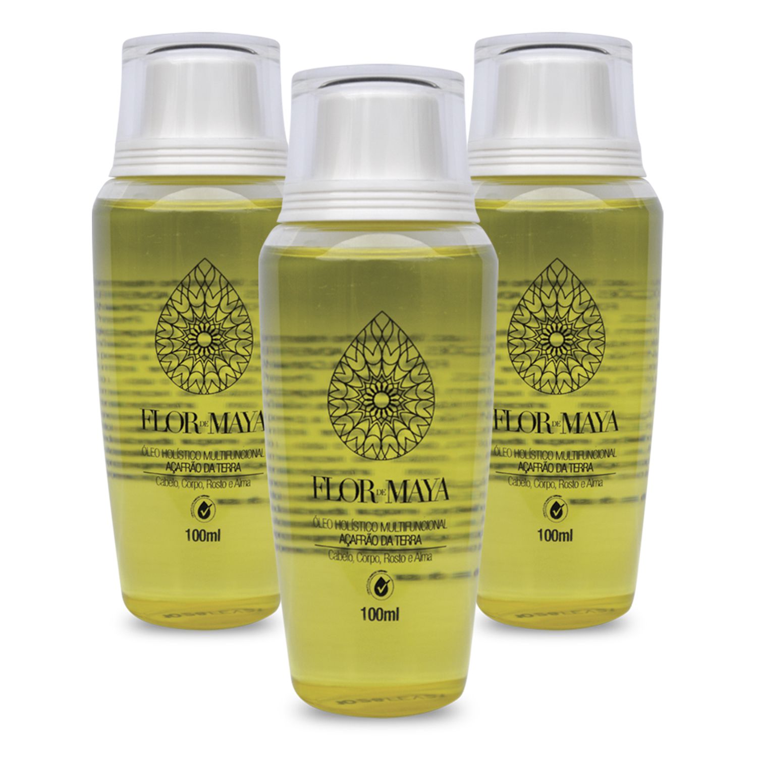 O Óleo Holístico Multifuncional da Flor de Maya é composta de produtos 100% Naturais:
